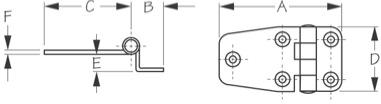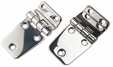 Stamped 304 Stainless. Each hinge is designed to be mounted on the front surface of a raised door.