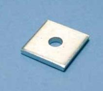 Square steel washer plate used on top of channel or angle for hanger rod or U-bolt attachment