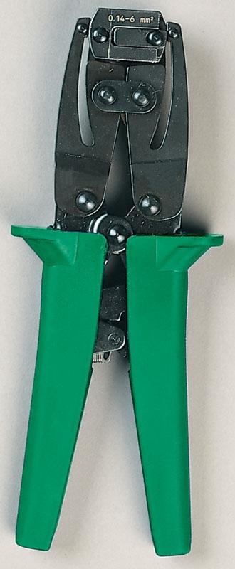 Makes trapezoidal crimp with full-cycle ratchet mechanismto assure complete crimps