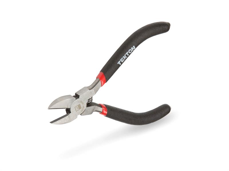 Build or repair electronics, jewelry, models, clocks, and small appliances with the TEKTON Mini Diagonal Cutting Pliers. The opposing twin blades cleanly and evenly snip copper, aluminum, brass, and soft steel wire as well as cable ties and plastic parts. To reduce muscle fatigue and make one-handed operation easy, a semi-internal spring creates a self-opening action. Hot forged and hardened through a precise heat-treating process, these pliers are stronger and more durable than pliers that are stamped from flat steel. Slim, nonslip grips won't get in your way and are easy to control and maneuver.