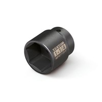 The TEKTON 1/2 in. Drive x 1-1/4 in. Shallow Impact Socket is engineered for use with impact drivers. It has a 6-point opening that snugly fits the hex shape of fastener heads, allowing it to apply maximum torque without slipping. To prevent round-off under stress, it grips the flat sides of fastener heads rather than the corners. Easy to read even in low light, the large, high-contrast size marking is permanently laser etched into the steel surface. The through-hole in the drive end locks onto the tang of impact wrenches or drivers so it won't fall off or stick on fastener heads. To protect against rust and corrosion, the black phosphate finish absorbs and holds oil, repelling moisture.