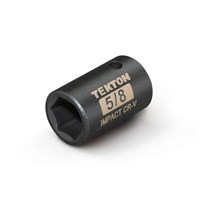 The TEKTON 1/2 in. Drive x 5/8 in. Shallow Impact Socket is engineered for use with impact drivers. It has a 6-point opening that snugly fits the hex shape of fastener heads, allowing it to apply maximum torque without slipping. To prevent round-off under stress, it grips the flat sides of fastener heads rather than the corners. Easy to read even in low light, the large, high-contrast size marking is permanently laser etched into the steel surface. The through-hole in the drive end locks onto the tang of impact wrenches or drivers so it won't fall off or stick on fastener heads. To protect against rust and corrosion, the black phosphate finish absorbs and holds oil, repelling moisture.