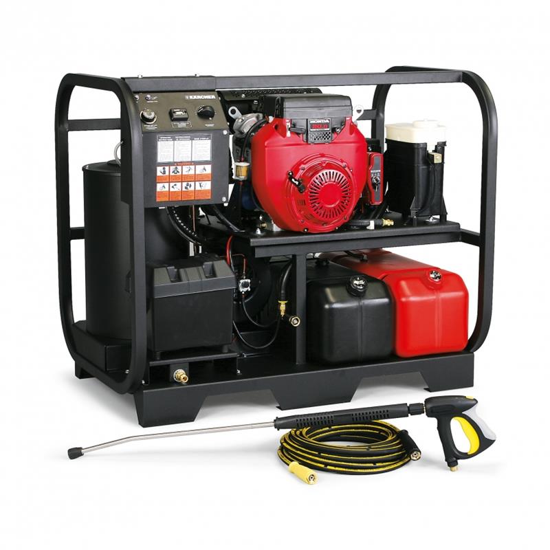 This skid-mounted hot water pressure washer is designed with Kärcher's unique 12V downdraft burner system. The highly compact burner is more than 92% efficient, resulting in better heat transfer using much less fuel.