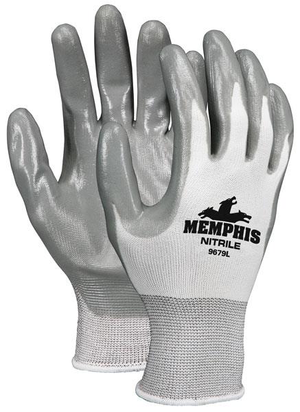 mcr safety 9679 memphis 13 gauge white nylon gray nitrile coated palm and fingers | 48WS