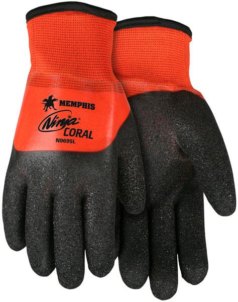 MCR Safety Ninja® gloves are engineered to provide the highest level of innovation. Each of the offerings in the Ninja® series include a unique shell and polymer combination incorporating the latest in hand protection technology. Our Ninja® Glove Line offers the greatest assortment of dexterity, sense of touch, and protection. The Ninja® Coral features a 15 gauge Hi-Vis Orange nylon shell, 7 gauge acrylic Terry interior, black coral 3/4 coating over premium clear PVC full dip.