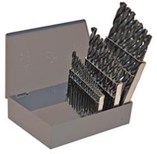 Eco Pro Jobber Length 13 piece SWG Number Drill Set in Steel index, Fractional Sizes 1/16" to 1/4" x 64th increments, High Speed Steel, Black Oxide Finish, 135° Split Point, Straight Shank, Heavy Duty, Right Hand Spiral, Import