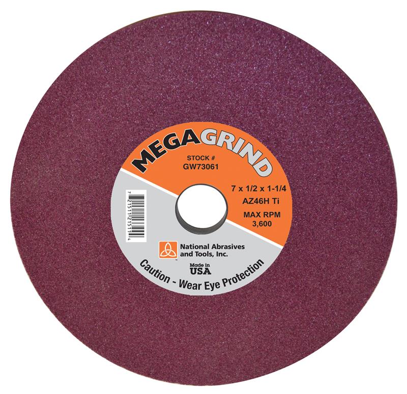Surface Grinding Wheel, 7" Diameter x 1/2" Thickness x 1-1/4" Arbor Hole, ANSI Grade "RA", 60-K Aluminum Oxide - Ruby, For High Speed and High Chrome Steel, Meets OHSA Code B-7-1, Vitrified Bonded, 6500 Surface Feet per Minute Rated, 10 per Box