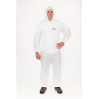Disposable coverall that protects against particulates as small as 0.3 microns. Strong, proprietary fabric resists abrasion. Breathable fabric helps keep wearer cool and avoid heat stress. Recommended applications include mold remediation, manufacturing, industrial and more.