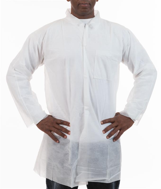 Polypropylene Lab Coat, One Chest Pocket, Open Wrist