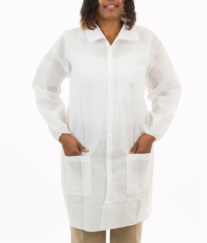 SMS lab coats provide an excellent particulate barrier along with protection from light liquid splashes and sprays. SMS fabric is strong yet breathable to keep users cool and help avoid heat stress. Recommended applications include pharma, labs, healthcare, controlled environments and more.