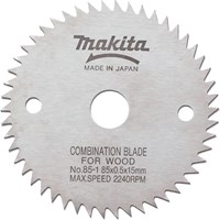 The Makita 3-3/8" General Purpose Combination Blade has an efficient 50 tooth design. The blade is made from durable steel and engineered for longer life. For use with Makita SH01W cordless circular saw.