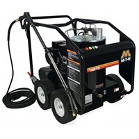 HSE-1002-0MM11 The HSE Series of direct drive hot water electric pressure washers are built for industrial cleaning on construction sites, farms, mining and oil fields. Known for the efficiency and longevity, they feature a top fired heat exchanger that is completely accessible for troubleshooting. Pump: Forged brass manifold · Thermal relief valve · Equipped with the Mi-T-M Pressure Relief Start which eliminates pressure build-up in the system. No need to trigger the gun when starting the pressure washer. Motor: Totally enclosed fan-cooled electric motor with manual thermal overload protection · 35-foot power cord Frame: Reinforced powder coated steel tube frame with center balanced lift · Convenient gun/wand holder and hose wrap · 13-inch flat-free tires Components: Energy-efficient top-fired heat exchanger · No. 1 or No. 2 diesel or kerosene fired burner (Not approved for bio-fuel) Miscellaneous: Temperature rise 150°F/66°C above ambient, maximum outlet temperature is 200°F Unit Includes: Quick connect nozzles - 0°, 15°, 25° and 40° · 50-foot x 3/8-inch steel wire-braided high pressure hose with quick connects · Professional-grade insulated trigger gun with safety lock-off · Adjustable pressure insulated dual lance