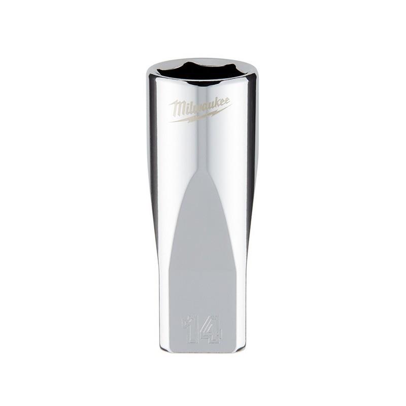 The Milwaukee 1/4 in. drive 14mm metric 6-point deep socket was designed from the ground to be part of the most versatile socket family. The innovative socket design has four parallel flat sides, which deter rolling and are wrench-compatible. Socket sizes are stamped into the flats for improved easy-to-read visibility. Optimized socket geometry helps reduce bolt rounding and stripping.