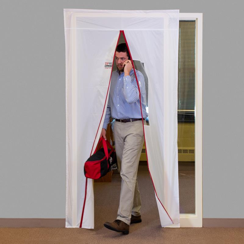 Key features: Quick and easy to install with ZipWall® double-sided tape Reusable Flame retardant Perfect for covering any doorway up to 46? × 86? Easy to install anywhere on a plastic barrier Powerful self-closing magnets ensure the door remains closed ZipWall® double-sided tape is gentle on the doorframe Contents: One 48? × 87? door panel with sewn-in self-closing magnets, three rolls of 1? × 24' ZipWall® double-sided tape, and one sheeting cutter.