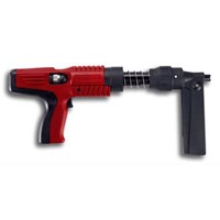 Lightweight, fully automatic powder actuated tool with 10 fastener magazine for high volume applications. This tool fastens up to 700 nails per hour for increased productivity. Easy drop in magazine for one handed operation. A power adjuster provides variable power choices and drives a wide variety of fasteners.